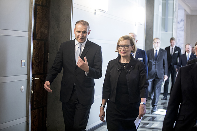 Arctic cooperation, developing trade relations and Iceland's experiences about the growth of tourism were discussed during the visit of Guðni Th. Jóhannesson, the President of Iceland, at the Parliament on Tuesday, 15 May. The guest was welcomed by Paula Risikko, Speaker, Parliament of Finland.