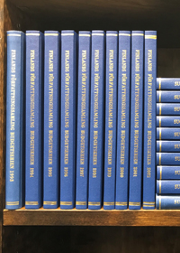 Ainoana kirjastona Suomessa Eduskunnan kirjaston kokoelmissa on nyt täydellisenä sarjana Suomen säädöskokoelman talousarviosarja ja Finlands författningssamling, budgetserien.