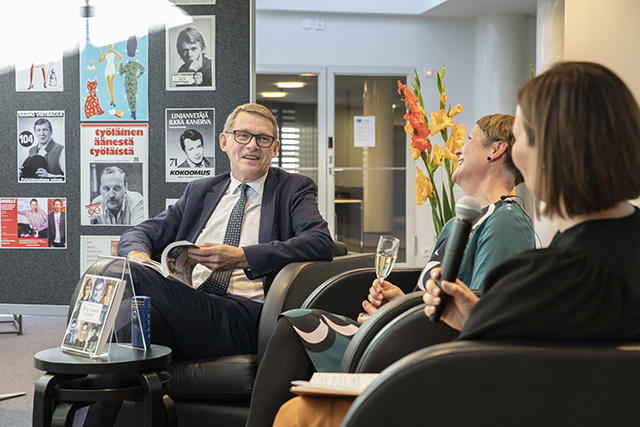 Videokooste lehdistötilaisuuden haastattelusta Kirjan saatavuus Eduskunnan kirjastossa