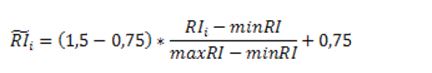 Jotta riskit painottuvat talletussuojamaksuissa niin, että enimmillään riskit voivat kasvattaa maksun 1,5-kertaiseksi tai supistaa maksun 0,75-kertaiseksi verrattuna korvattavien talletusten määrään perustuvaan maksuun, kunkin talletuspankin riskejä kuvaava mittari on skaalattava seuraavasti: