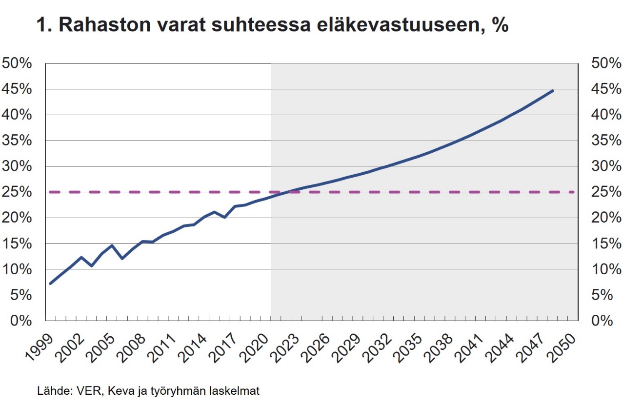 Rahaston varallisuus oli vuoden 2020 lopussa markkina-arvoltaan 21,0 miljardia euroa. Valtion eläkevastuu oli rahaston vuoden 2020 tilinpäätöksen mukaan 93,1 miljardia euroa, joten valtion eläkkeiden rahastointiaste oli noin 23 prosenttia. Rahaston sijoitusten keskimääräinen vuosituotto on ollut noin 5,5 prosenttia vuosina 2001–2020. Mikäli tuotot pysyvät likimain entisen kaltaisena ja talousarviosiirto 40 prosentissa eläkemenosta, kasvavat rahaston varat edelleen sekä määrältään että suhteessa eläkevastuuseen maltillisesta talousarviosiirron nimelliskasvusta huolimatta (kuvio 1).