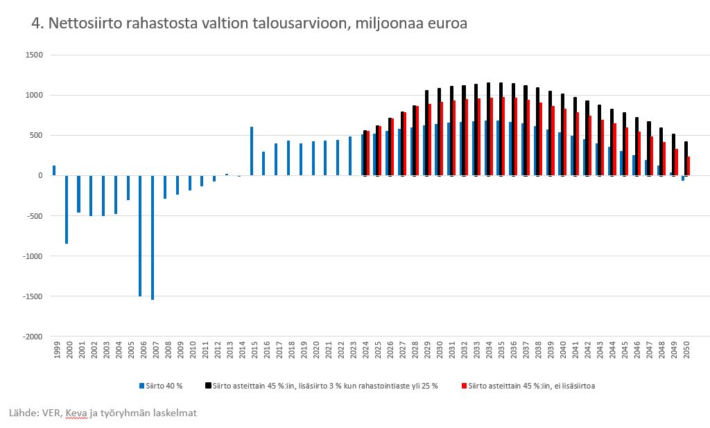 Lähde: VER, Keva ja työryhmän budjettisiirtovaihtoehdot