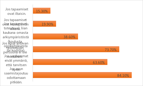 Hyvinvoinnin haasteet siirtyvät monesti opinnoista myös työelämään. Nuorisobarometrin 2019 tulosten mukaan joka viides nuori tuntee usein ahdistuvansa työasioista myös vapaa-aikana ja yli kolmannes joutuu usein venyttämään työpäiväänsä saadakseen työt tehdyksi. 17 prosentilla on vaikeuksia jaksaa työssään.