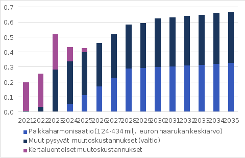 Lainanottovaltuuden tason määrittäminen perustuisi julkisen talouden suunnitelmaan sekä hyvinvointialueen lainanhoitokykyyn. Valtioneuvosto tekisi lainaottovaltuutta koskevan päätöksen julkisen talouden suunnitelman hyväksymisen jälkeen, ja hyvinvointialuetalouden velkaantumisen aste määräytyisi suunnitelman reunaehdoilla. Jos julkisen talouden, valtiontalouden tai hyvinvointialueen rahoitusasema heikentyisi merkittävästi ja poikkeuksellisesti, hyvinvointialueen lainanottovaltuus voitaisiin vahvistaa 2 momentissa määriteltyä pienemmäksi. Julkisen talouden suunnitelmassa olisi mahdollista julkisen talouden merkittävästä ja poikkeuksellisesta heikentymisestä johtuen todeta, että lainanottovaltuutta ei voitaisi myöntää täysimääräisesti 2 momentin mukaisesti. Hyvinvointialueiden rahoituksen riittävyyttä niiden tehtävien hoitamiseen kokonaisuutena ja hyvinvointialueittain (rahoitusperiaate) arvioidaan julkisen talouden suunnitelmassa 12 §:n mukaisesti. Suunnitelmassa käsitellään hyvinvointialueiden tehtäviä ja velvoitteita, taloutta sekä valtion hyvinvointialuetalouteen liittyviä taloudellisia vastuita. Säännöksen mukaan julkisen talouden suunnitelma ohjaa ministeriöitä niiden valmistellessa hyvinvointialuetta koskevaa lainsäädäntöä ja ohjausta. Julkisen talouden suunnittelussa ja valtion budjettisuunnittelussa käytetään valtiovarainministeriön riippumatonta ennustetta. hyvinvointialueiden velkaantuminen näkyy julkisen velan kokonaismäärässä. Tilanteessa, jossa julkisen talouden, valtion tai hyvinvointialueiden rahoitusasema olisi merkittävästi ja poikkeuksellisesti heikentynyt esimerkiksi laajakantoisen taloudellisen kriisin takia, voitaisiin myös lainanottovaltuuksia joutua rajoittamaan vastaavasti kuin muutakin julkista taloutta sopeutetaan. Odottamattomien kriisien seurauksena julkinen talous ja valtiontalous voivat heikentyä yllättäen ja talouden sopeuttaminen aiemmalle uralle sen jälkeen voi vaatia usean vuoden ponnisteluita koko julkisessa taloudessa, mukaan lukien hyvinvointialuetaloudessa. Sopeuttaminen on tyypillisesti pitkäaikainen prosessi, joka usein alkaa vasta kriisin jälkeen ja tarpeet siihen voivat juontaa juurensa akuutin kriisin ohella myös julkisen talouden kestävyyden ongelmista.