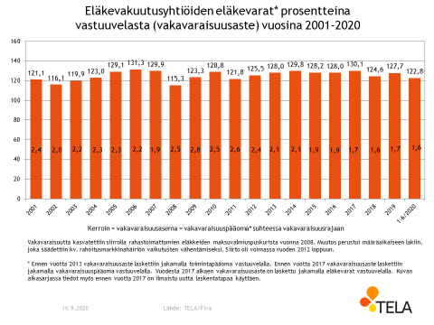 Vakavaraisuudella tarkoitetaan säätiön tai kassan kykyä selviytyä sen toimintaa uhkaavista erilaisista riskeistä. Vakavaraisuutta mitataan vakavaraisuuspääomalla ja se mitoitetaan vakavaraisuusrajan avulla. Vakavaraisuuspääomalla tarkoitetaan määrää, jolla eläkesäätiön tai eläkekassan varat ylittävät sen velat ja muut näihin rinnastettavat sitoumukset. Vakavaraisuuspääoman tarkoituksena on toimia sijoitustoiminnan ja säätiön tai kassan toimintaan liittyvien muiden riskien puskurina. Vakavaraisuusraja määritetään riskiteoreettisesti vastaamaan yhden vuoden vakavaraisuuspääoman tarvetta. Vakavaraisuuspääomaa kartutetaan sijoitustoiminnan tuotoilla, jotka ylittävät eläkevastuun laskennassa käytettävän tuottovaatimuksen. Ylite ohjataan lisävakuutusvastuuseen. Jos vakavaraisuuspääoma ylittää sille säädetyn ylärajan kahtena peräkkäisenä vuotena, eläkelaitoksen täytyy purkaa vakavaraisuuttaan maksunalennuksin.