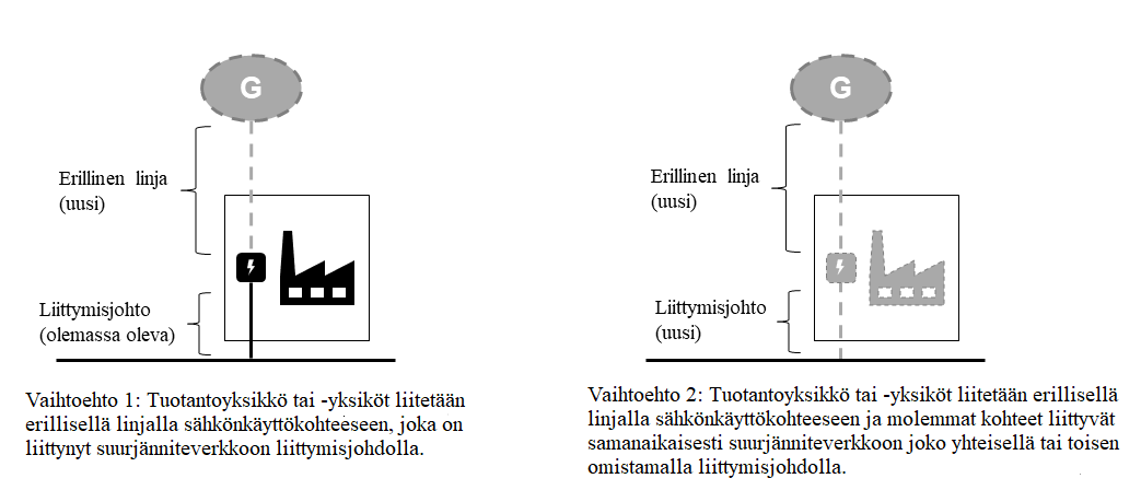 Suurjänniteverkkoihin liittyvien aktiivisten asiakkaiden, näiden muodostamien ryhmien tai energiayhteisöjen toimintamahdollisuuksia rajoittaa se, että niiden ei ole nykylainsäädännön mukaan mahdollista liittää muuta sähköntuotantoa kuin pienimuotoista sähköntuotantoa suoraan sähkönkäyttökohteeseen erillisellä linjalla kiinteistön tai sitä vastaavan kiinteistöryhmän ulkopuolelta. Energiaratkaisut, joissa esimerkiksi vetylaitos yhdistettäisiin erillisellä linjalla suoraan uusiutuvan tuotantoon uusiutuvan vedyn tuottamiseksi RED II -direktiivin lisäisyysvaatimusten täyttämistä helpottavalla tavalla, ei ole mahdollista.