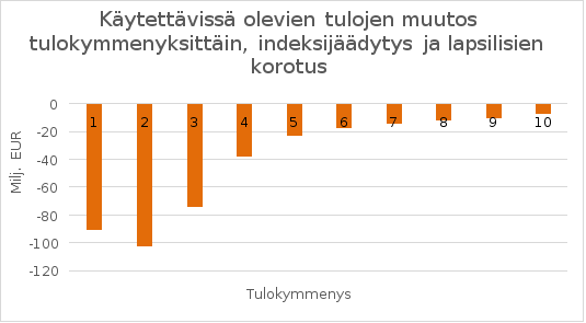 Muutosten vaikutukset kohdistuvat eniten alimpiin tulodesiileihin. Vaikutukset toiseksi alimpaan tulodesiiliin ovat hieman suuremmat kuin alimpaan.
