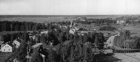 Kauhajoki kyrkby från kyrktornet norrut 1940. Bild: Alfred Niemistö. Kop. Kauhajoki museum.