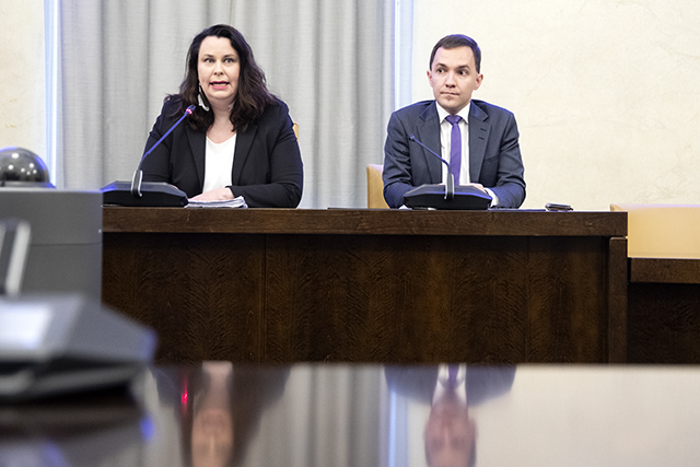 På bilden grundlagsutskottets ordförande Johanna Ojala-Niemelä (sd) och medlem Wille Rydman (saml)