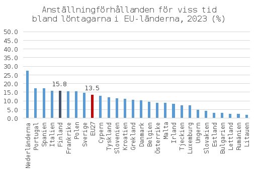 Statistikcentralens Arbetsmiljöundersökning innehåller påståenden om visstidsanställda löntagares ställning på arbetsmarknaden och om deras situation. Resultaten redogör för de visstidsanställda löntagarnas subjektiva synpunkter på deras egen situation. Enligt den senaste undersökningen från år 2023 önskar omkring två visstidsanställda löntagare av tre att de hade den trygghet som följer av ett fast anställningsförhållande och omkring hälften upplever att den ekonomiska osäkerheten är påfrestande och/eller att det är besvärligt att göra upp framtidsplaner. Drygt 40 procent svarade att de gärna byter arbetsplats eller uppgifter. Dock upplever drygt 40 procent även att osäkerheten belastar dem psykiskt och att de skulle våga ingripa i missförhållanden på arbetsplatsen i högre grad om de hade en fast anställning. Det finns tydliga skillnader i männens och kvinnornas svar på de tre påståendena. Av de visstidsanställda uppger 47 procent av männen och 39 procent av kvinnorna att de gärna byter arbetsplats eller uppgifter. Av de visstidsanställda upplever 41 procent av männen och 49 procent av kvinnorna att osäkerheten belastar dem psykiskt. Av de visstidsanställa uppger 15 procent av kvinnorna och åtta procent av männen att de upplevt diskriminering på grund av arbetsförhållandets art. Sutela, H., Viinikka, J. & Pärnänen, A. Työolot murrosten keskellä – Työolotutkimuksen tuloksia 1977–2023, 60–62. Helsingfors: Statistikcentralen.