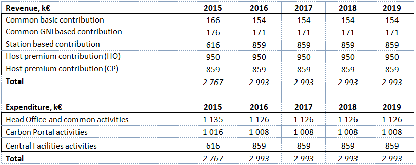 Table 1. The plan for ICOS ERIC revenue and expenditure structure for the first five years, calculated based on the estimations in Table 2.